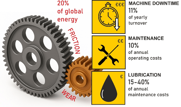 In vielen technischen Anwendungen verursachen Reibung und Verschleiß hohe Kosten und Risiken: